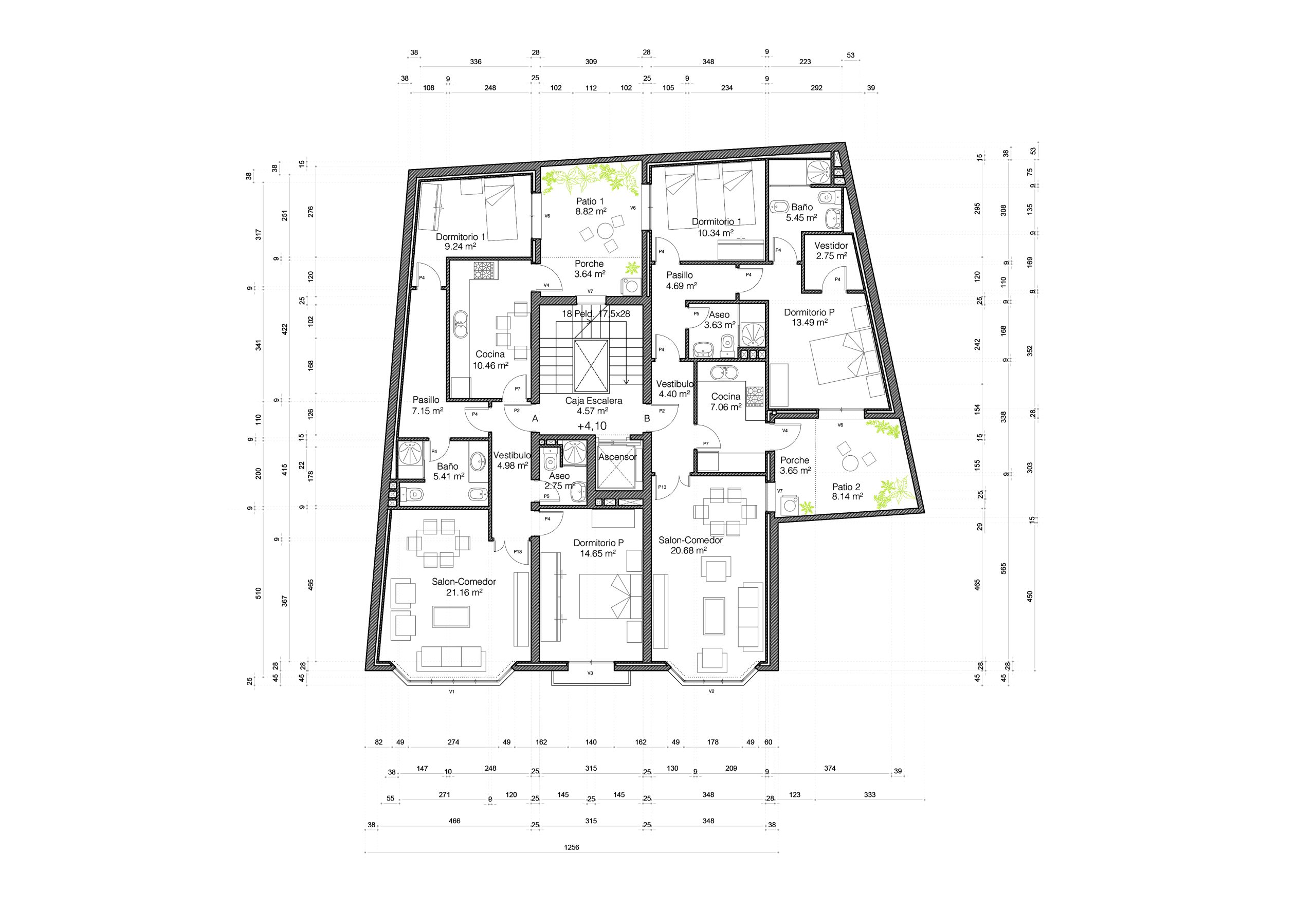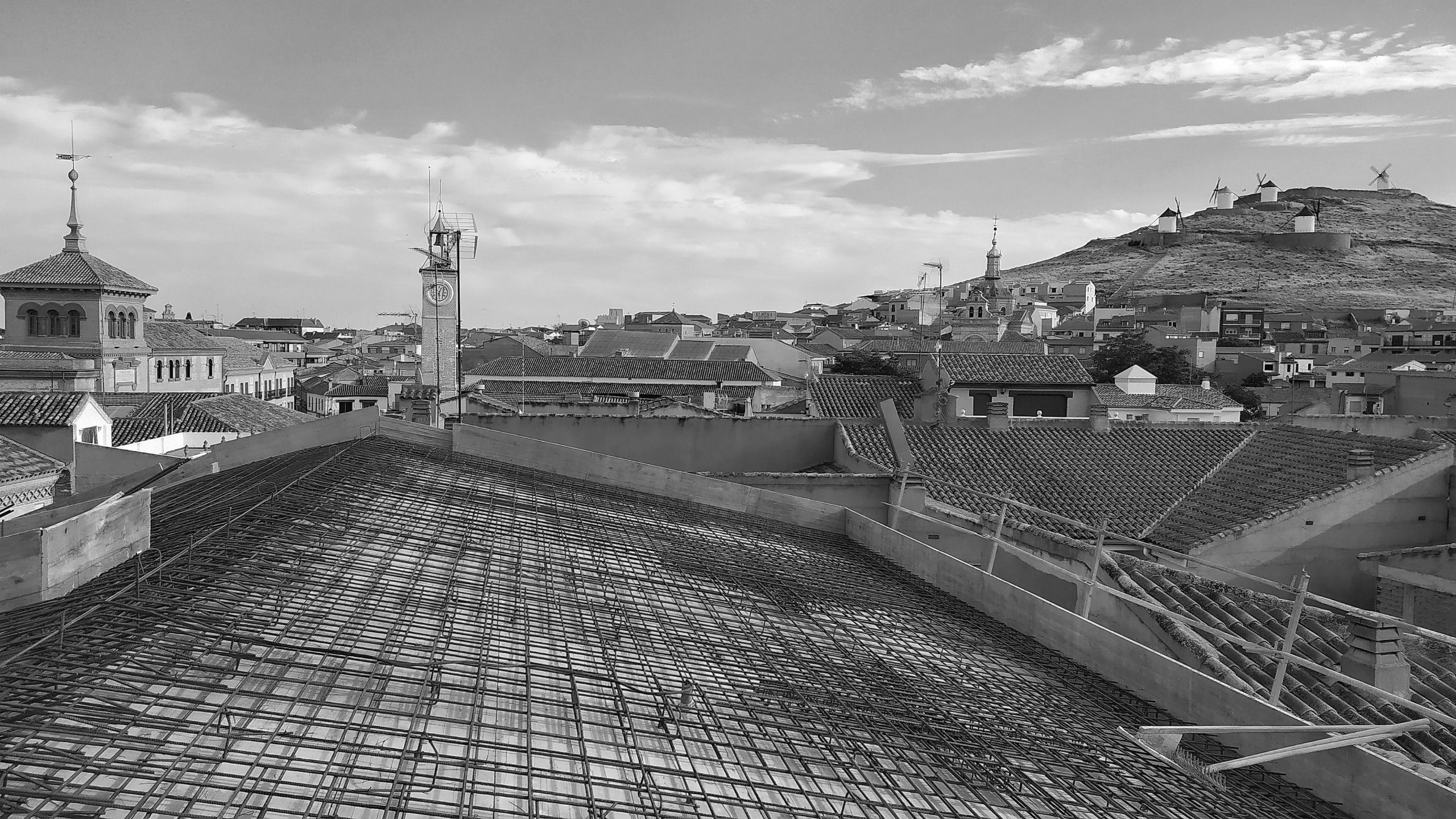 Edificio plurifamiliar entre medianeras, formado por viviendas en altura y locales comerciales en planta baja en Consuegra, Toledo.